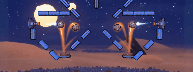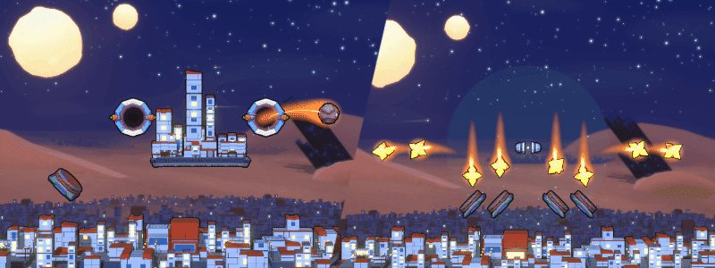 Falling Stars is a simulation game where players design the automatic defense system of a city to protect it from falling celestial objects. It's a mix between a tower defense and an automation game with physics.